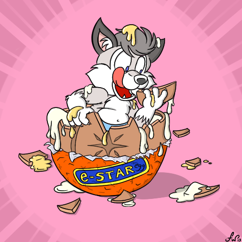 Was the wolf inside the egg ? Or did he ate it all already ? He is sure looking forward to this piece ...