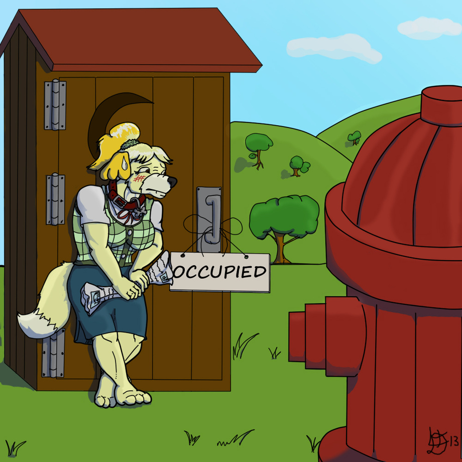 Animal Crossing is a nice place to live but really few house have an indoor bathroom. So this little outhouse is well liked by the citizen. When it is not occupy... Isabelle cannot wait any longer and no matter how undignified it is, the fire hydrant is getting a lot more attractive as alternative. It always beat wetting herself.