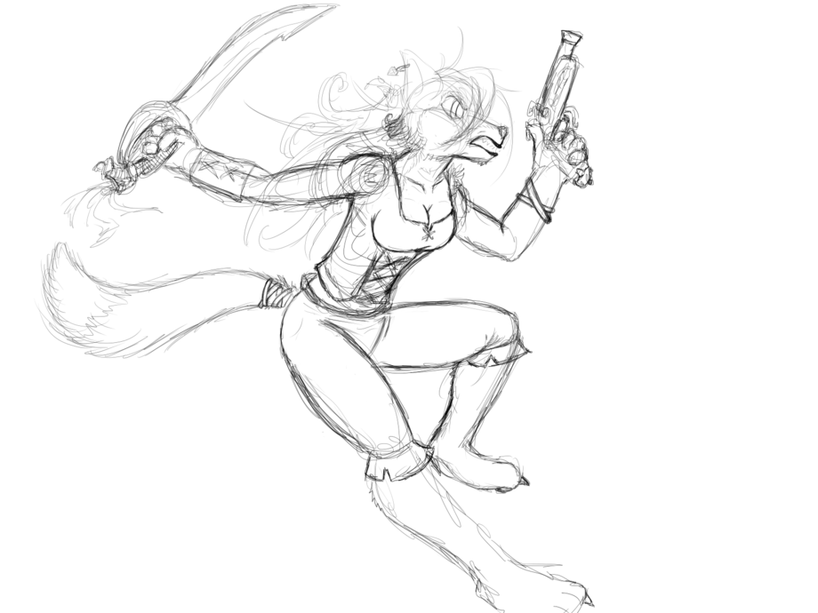 Totally random sketch of a vixen I had in mind once, long ago, when I made a character by the same name on "Pirates of the Burning Sea". Lol. And I swear, I NEVER play a female character, in ANY game... EVER. o_O