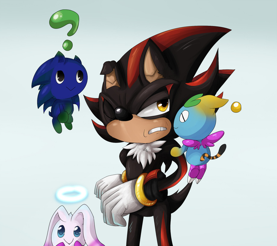 everybody has the headcanon that shadow secretly loves chao but personally Id find it far more endearing if he couldnt stand any animals but chao swarm to him anyways because he constantly oozes chaos energy and he just sort of has to work with it begrudgingly