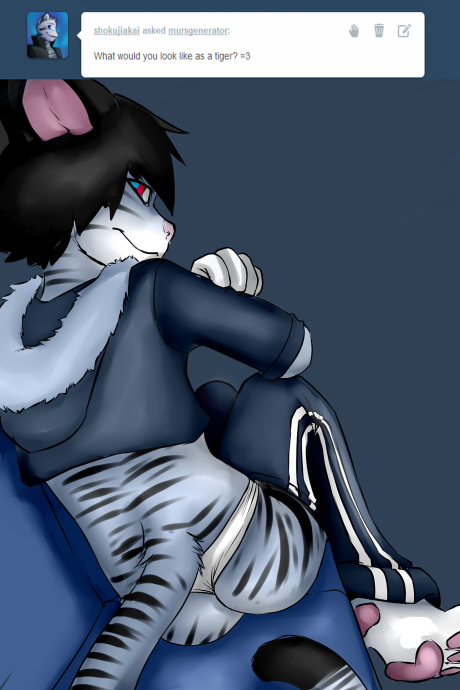 wow you are one sexy tiger and i love that cute sexy tiger butt there two