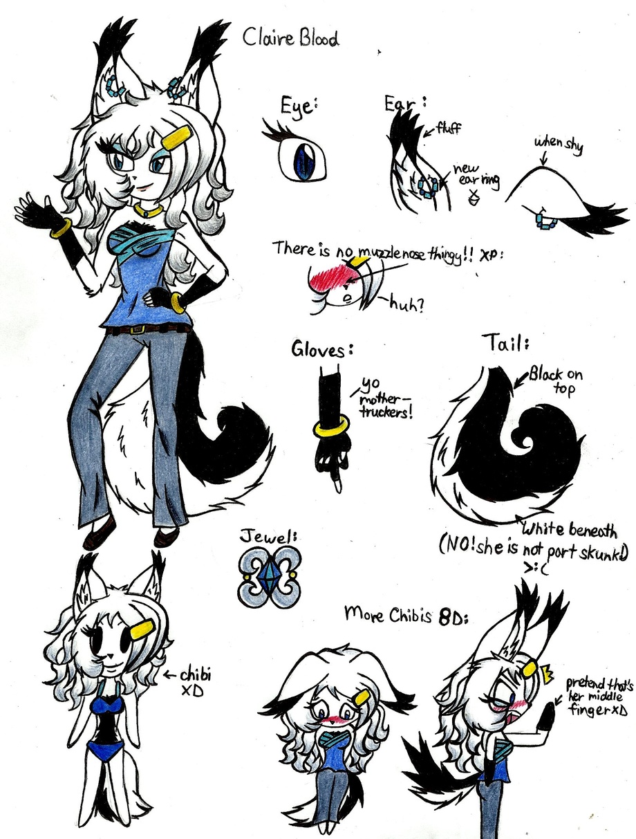 Hey, this is just my reference for my character Claire X3 she's a wolf and pretty much her physical description is right in there, feel free to draw her <3 just let me know so i can see :3