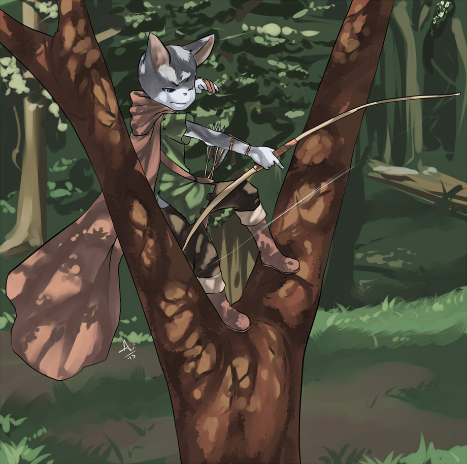 (really creative title there imer - good job.. >.<') ahem. Imer - the defender of all cookies, slayer of evil monsters - is currently out on a mission. He clumb up a tree to have a better view of his surroundings. This advantage allowed him to get off the first shot on one of the monsters who terrorized his cookies.