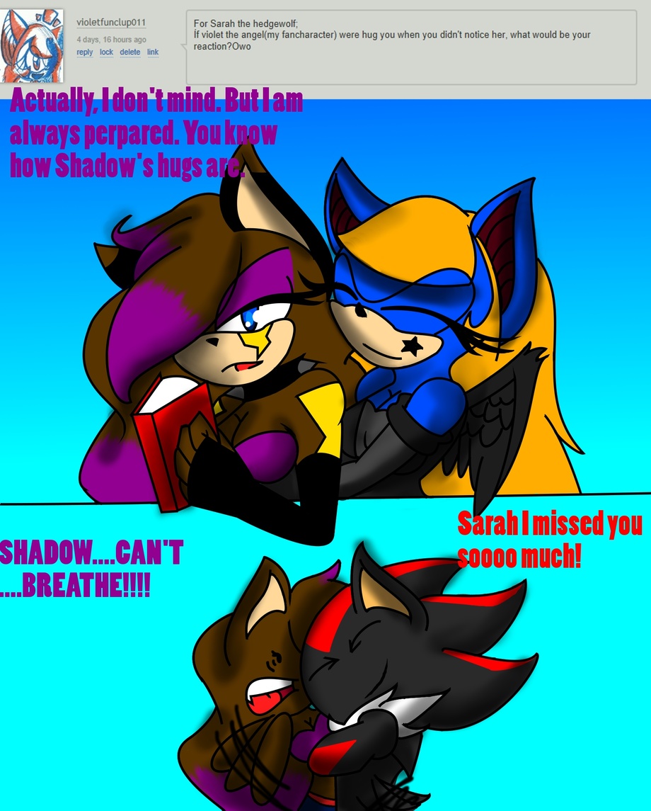 Poor Sarah. :'( She is being chocked by Shadow's hug.