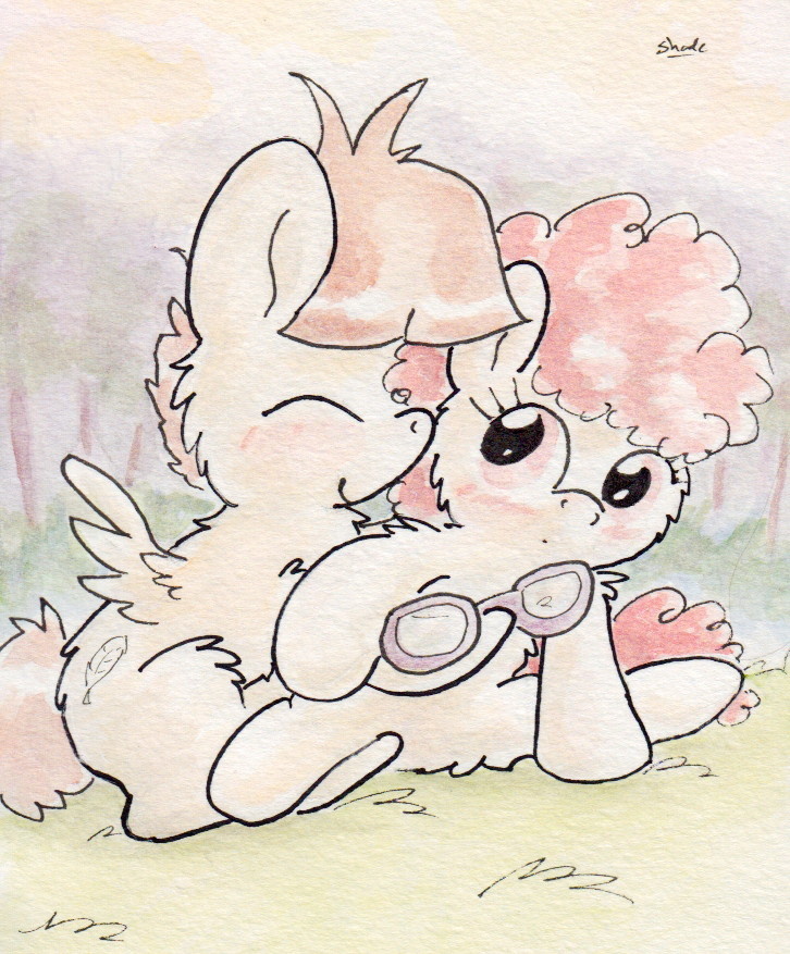 you know with out her glasses and with that mane she has a sorta filly pinkie look to her. and since you just started this ship its on you to name it because there needs to be more its really cute.
