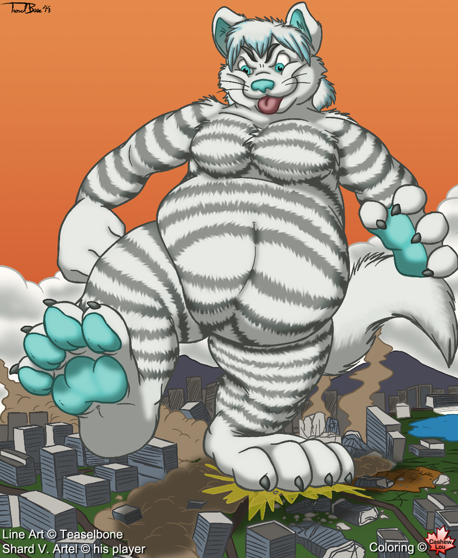 Sebastian Coco Foxy commissioned me to color and shade this image drawn for him by Teaselbone, showing a hefty and huge Sebastian being tied up and tickled, which causes his footpaws to grow.