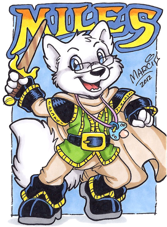I really like how this came out. Koj's outfit has a lot of small details, which could potentially drive an artist mad or lead him / her to take too many shortcuts and simplifying the design. Also, I love how my name is written in the style of the comic book's logo.