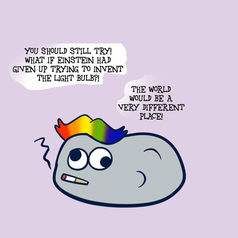 I have studied for hours and am fairly sure my rock smoking a cigarette while wearing googly eyes and a rainbow merkin does not resemble any existing characters. I hope this will suffice!