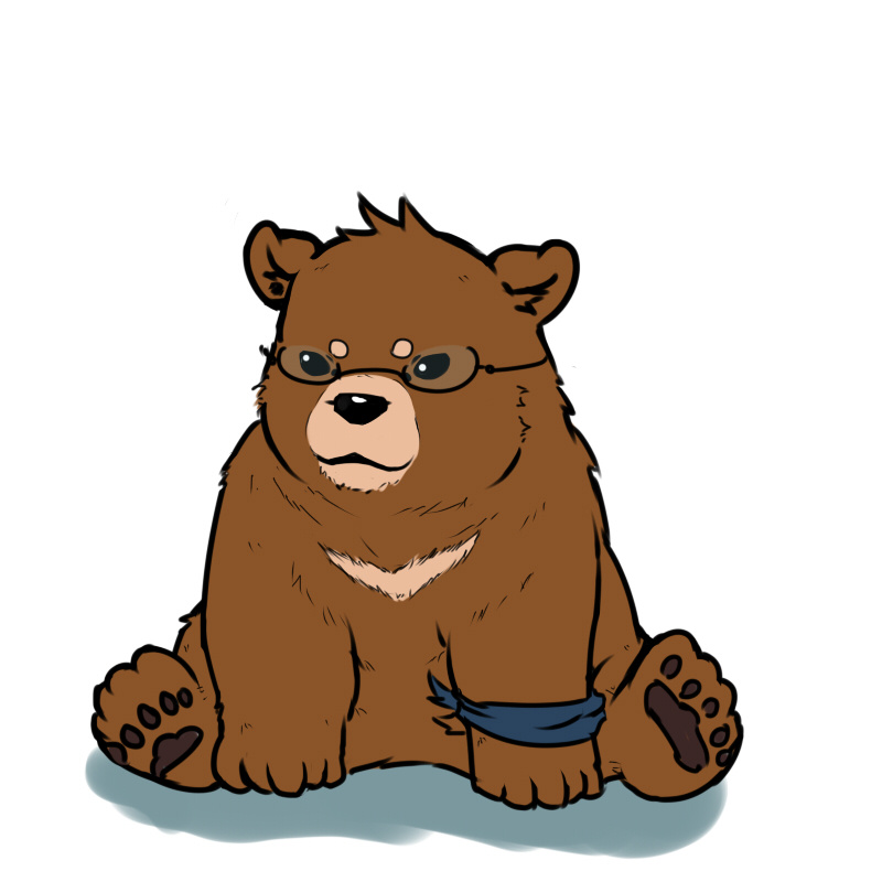 He does look very sweet. I like the paw pads and chest region's furriness a lot. Good posture for a bear, too. Heh, I just noticed the glasses strap, I like that. Good job.