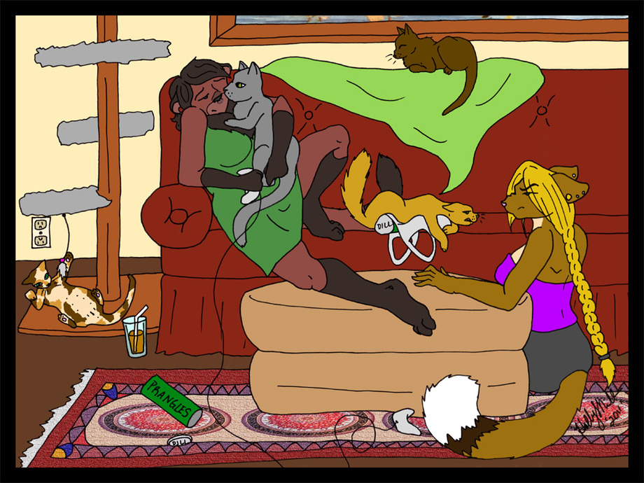 A little quick and dirty illustration of what happens when you have cats and try to have friendly vidjagame and snackies time. ¬¬