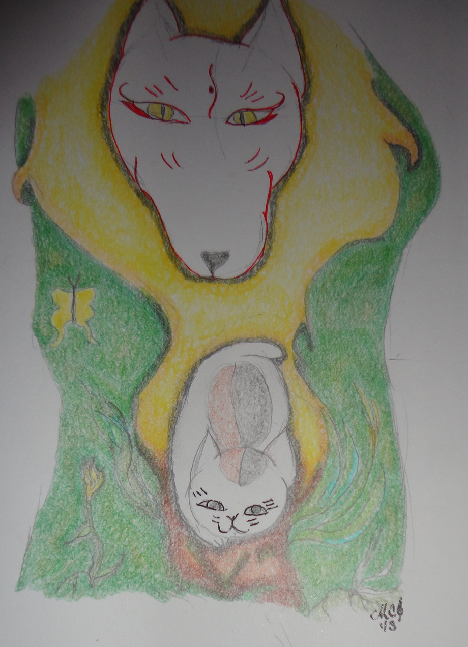 This again is a color pencil work, it is very easy to do and I enjoyed working with the concept again. Though using some gel pens to add the details. This was especially fun to do, though I wish I had more time with a scanner to get what I want. It did give some depth when I used the glitter gels for the eyes.