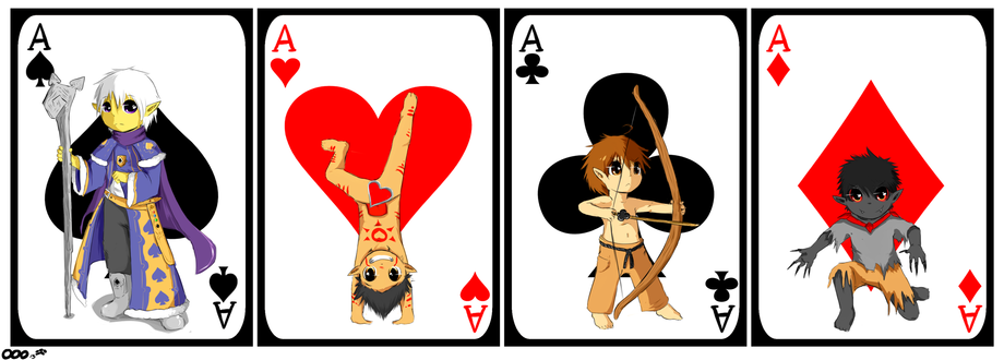 The Ace of clubs will allow me to penetrate the boss. On the other hand, the Ace of diamonds will allow me to back stab him. The Ace of spades i'm sure will give me an opening to play with. But the Ace of hearts will probably give me the much needed...revival I need when i take a beating.
