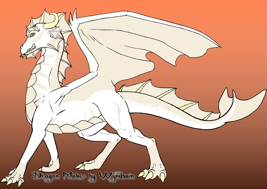 Hakim - Male Oriental Dragon (a hybrid of European and Asian Dragons, the rough visage and wings of the Europeans, and the slender and sleek bodies of the Asians) - Has White Scales with Grey Underbelly and Markings. He has fins along his body, and around his head (used to regulate his body temperature).