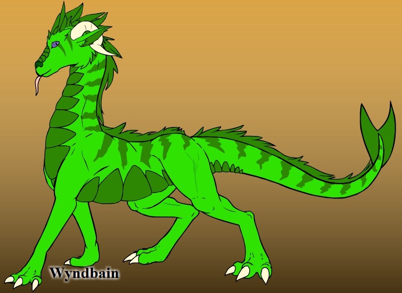 Zu'Yin - Female Eastern Dragon - Has Green Scales, with a Dark Green Underbelly, which is the same colour for her Markings and Mane. She has a flipper-like tail.