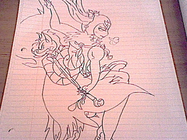 This one was a tiny bit more complex for me to draw, but the only hard part was putting the details into Kayamba's facial expression and his Bullfango staff. And, yes, the dance pose is intended to look a bit goofy, despite the look of seriousness on Kayamba's face. He seems to look a bit more mature in this drawing than the other one. Well... I hope you all enjoy.