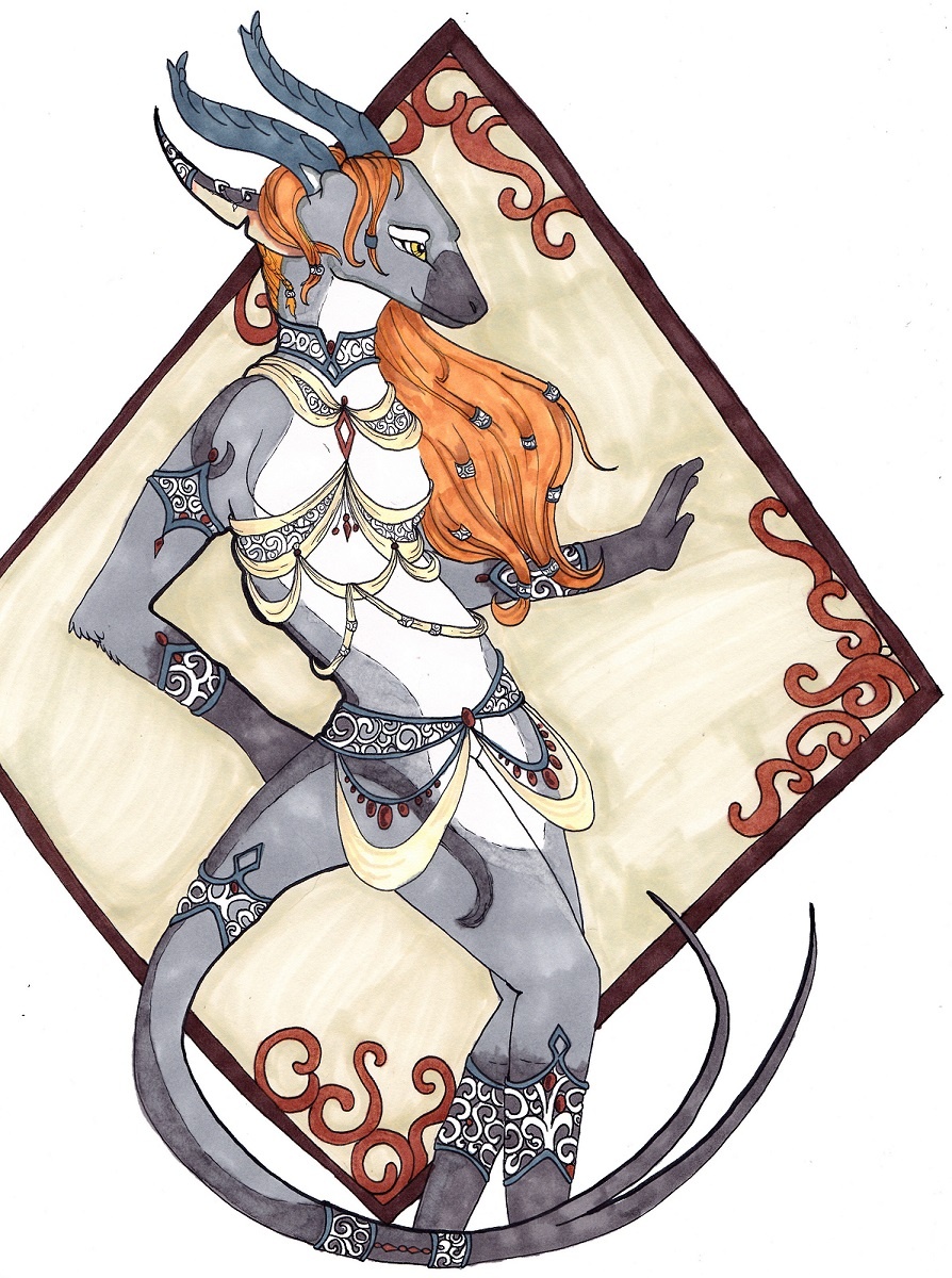 I'm thinking about doing a matching piece with her male character, Ary. Seems like this piece is just begging to be a matched set.