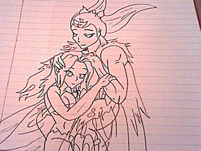 A drawing that I just now finished completing of Kayamba and Kristen nuzzling~