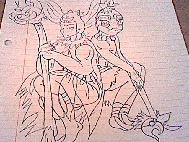 Finally finished this sucker. It took me several times to draw Kayamba in his crouching position, but eventually I got it the way I wanted it. I had a lot of fun doing this drawing, I haven't drawn Cha-cha in forever. I hope you all enjoy~