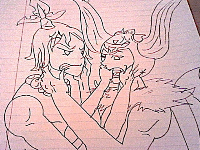 I had a lot fun drawing this. I decided to draw Cha-cha to where you can see his face. What he's doing to Kayamba looks pretty painful. Ouch... Well, enjoy~