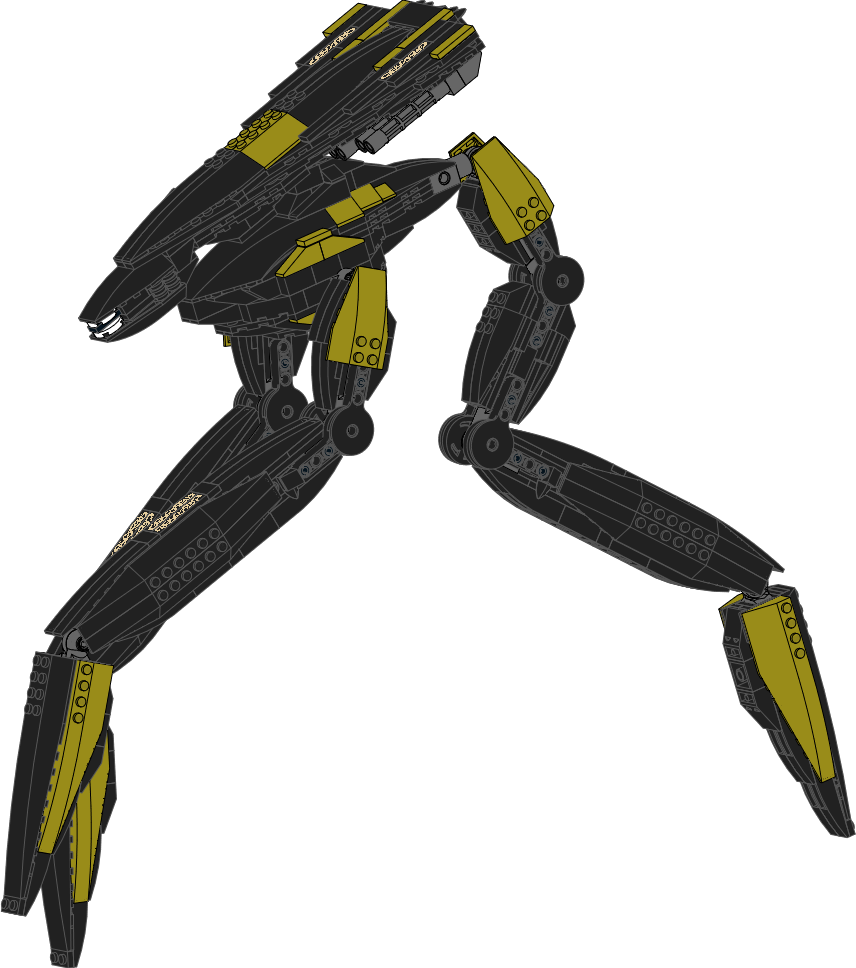 In all this was a rather fun and inventive build. Drawing inspiration from the Scion Mauler that is featured in BattleZone 2: Combat Commander, I went about trying to streamline the set, and make it more organic in appearance. I had a bit of trouble with the torso/pelvis when it came to structuring it so that it didn't fall apart as a real build. Unlike my previous project - the Red Queen - I deliberately arranged the legs of the Black Queen so that the set was as stable as a tripod can get. Beyond that, the only other thing I have to say about this set is that it's more a model than anything else, as it lacks a Minifig cockpit. Then again, maybe it's good I didn't add a cockpit; that way, I can claim the Black Queen as a Micro-scale set... >