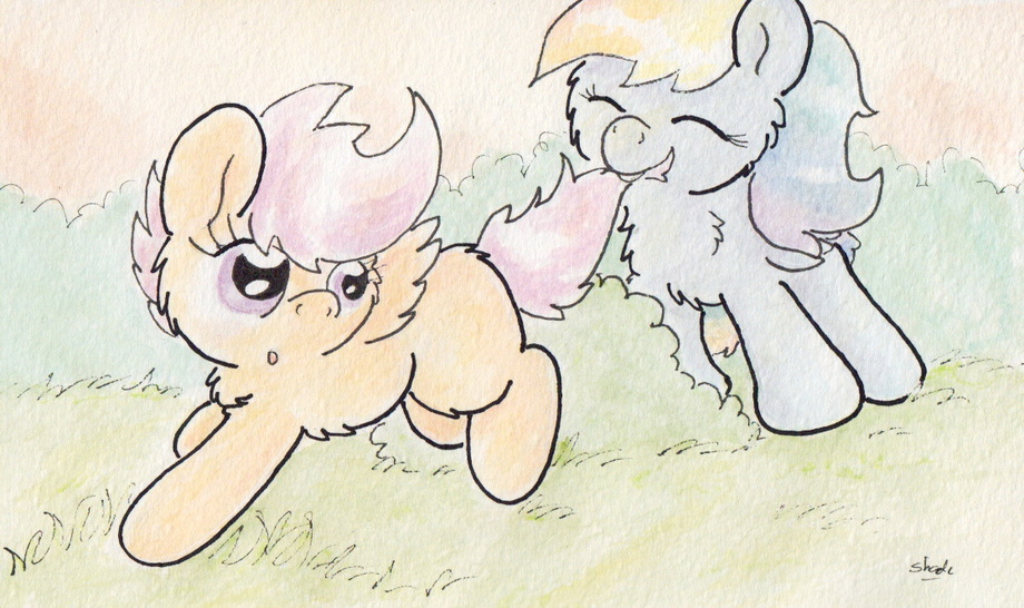 Yea! They're very lively and descriptive. Looking at this, you can tell that Rainbow just stepped out of the bushes as Scootaloo was running by, and snagged her at the right moment.