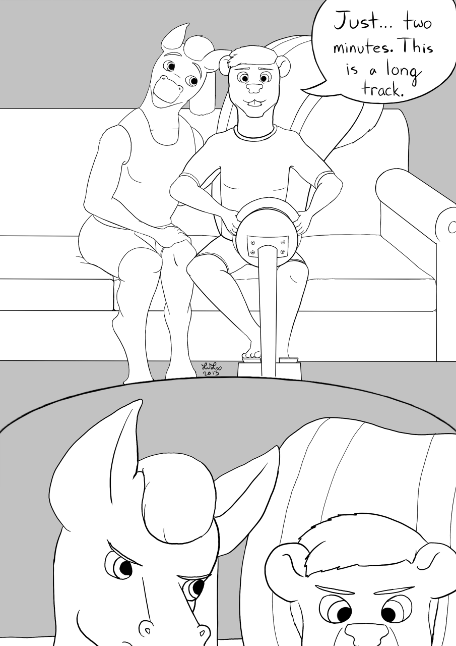Mitchell wants to have fun with Eric but Eric wants to finish this race first.