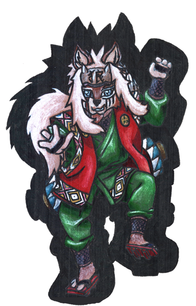 For those that will notice, yes there is Native American designs added to Jiriaya's traditional look, that is because this is a fusion of sorts.