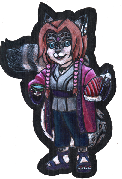 liavain_axon in a merge with her favorite character from the Naruto series, Lady Tsunade! Drinking some sake' while enjoying some Tuna Sushi as well. Kind enough to even share, or is she stealing it from you?