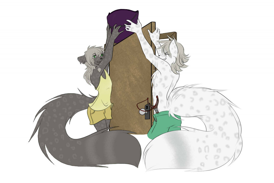 To this day, no one has found the culprits who booby-trapped the resine's hotel door, even though the prime suspects are Ainoko's twin trouble making imps Puti and Obsidian are being questioned as we speak. The two have been suspected of many twisted pranks the past few months, but so far nothing conclusively ties the two to the embarrassing troubles despite the cubs being seen in the vicinity prior to the events in question. Even though Resine is understandably upset that he is now mostly purple, the snowmew is laughing it off as typical cubhood antics. Ainoko is upset about this as well and is helping to find concrete evidence that his cubs perpetuated this bad prank.