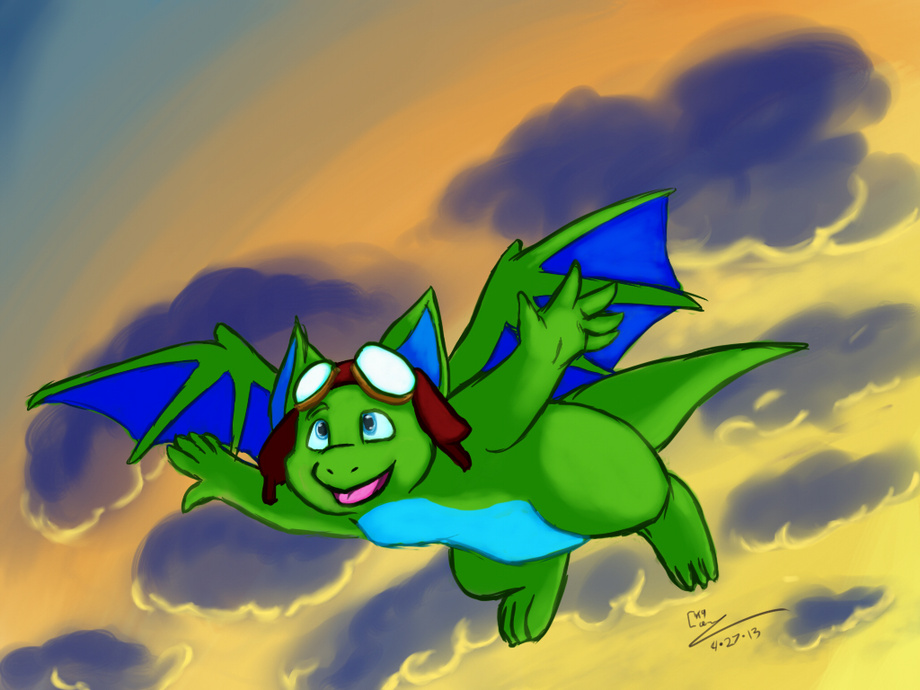That is not the case in this pic! I loved Pocket Dragon Adventures as a kid and I wanted to draw my favorite character, Zoom Zoom! For those of you who don't know, Zoom Zoom here can't fly, he glides, so I decided to grant his hearts desire and let him soar through the clouds during a beautiful sunset.