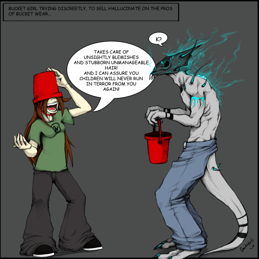 I think I might do a follow up pic of him with the bucket on his head XD Would be so cute. No matter how scary he would try to be... you just cant take someone serious if they have a bright red bucket on there head ! lol