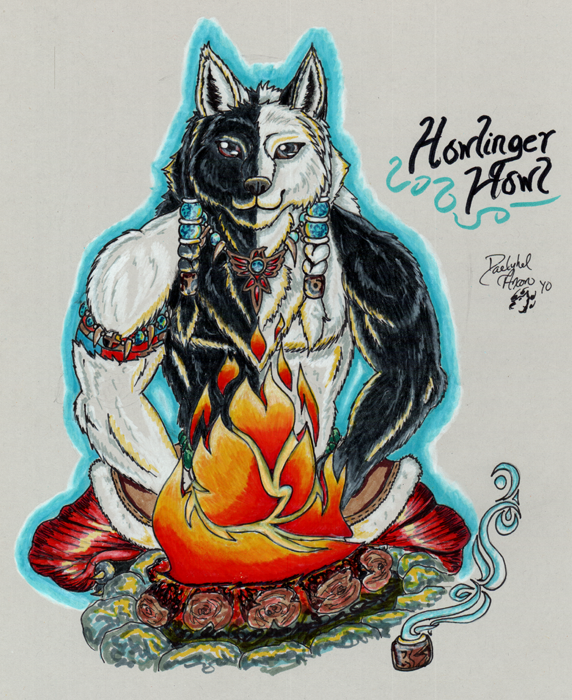 howlinger_howl sitting before a ritual fire for meditation, when the sound of an unexpected quest approaches out of the bush.