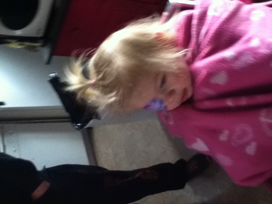 I wraped my baby sister Lily in my house coat she loved it~❤