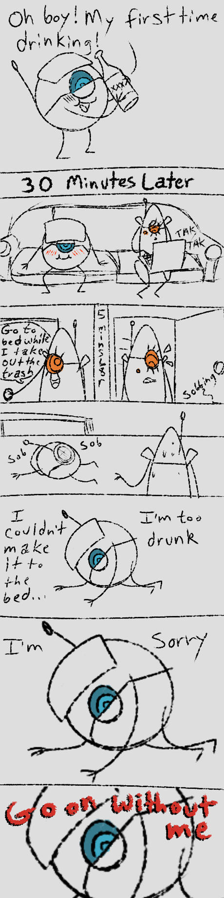 Based off the true story of my first time drinking, played by Atlas and P-body from Portal.