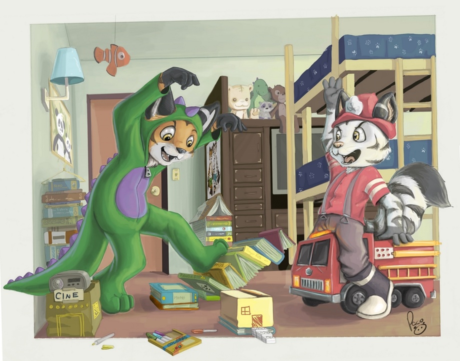 This is a really cool and fun commission my bro and I thought of that reminds us of a scene in Lilo and Stitch hehe we love Stitch and that scene and we love this commission, Paco was really cool and did this traditional first and then colored it.