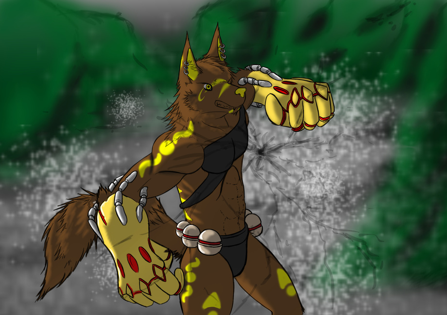 His name is Patch, he's a wolverine and his favorite hero is Marvel's Wolverine (hence the Wolverine hoodie) His parents were killed by a stranger who wanted to get his paws on Patch for unknown (non-sexual) reasons and Patch turned to the only other hero he knows, Wolverine, for inspiration on what to do. He may look cute and yes he can be very sweet, but if he finds you had anything to do with his parents' demise, LOOK OUT!