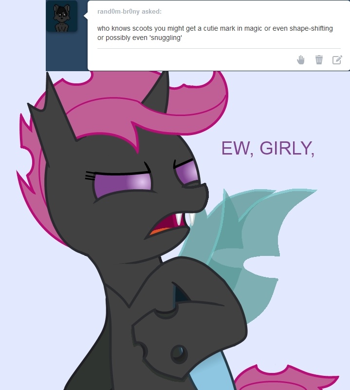 A brief appearance from the changeling queen, Ovi who runs a changeling brothel in Los Pegasus,