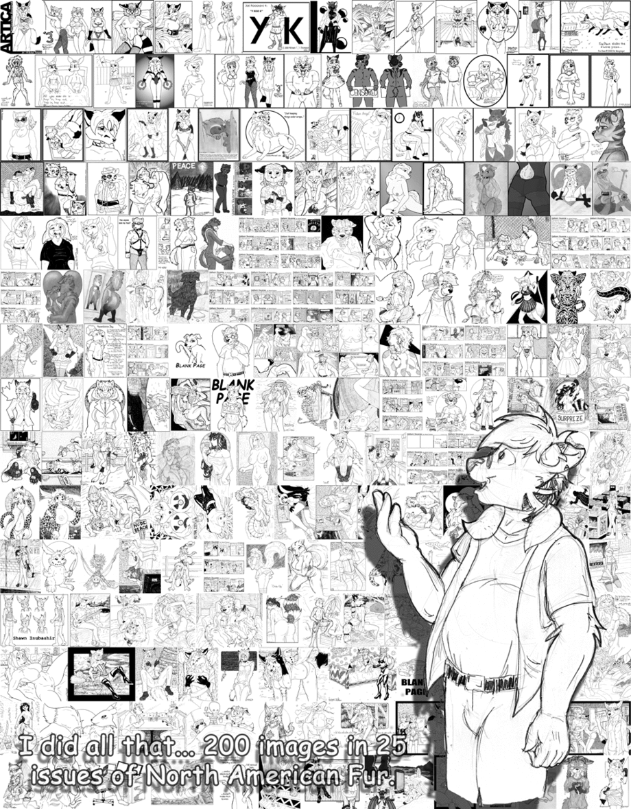 This up and coming issue of NORTH AMERICAN FUR, a truly great and wonderful furry fanzine APA, will be my 25th consecutive issue! Not only that, but this will see my 200th image in print in this fine, amateur publication! Double whammy of greatness! So here is a peak of every image I have ever published there, with more yet to come!