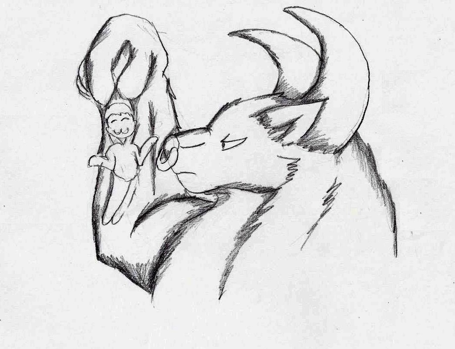 Unfortunately for me, Garth can tell when I’m not telling the truth. Snatching me up, he tries to use my fear of heights against me, when I get nervous I giggle stupidly and get all uncomfortable, it really sucks. But this picture and face on my Minotaur are epic wins