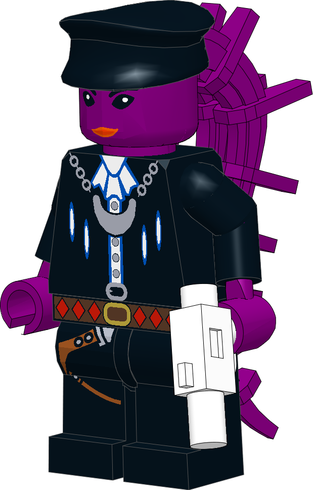 Her typical attire falls within the lines of soft but strong Hssiss-leather trousers, a white shell-spider silk blouse, a black cortosis impeded neo-leather flight jacket, black Hssiss-leather boots, and a black Hssiss-leather swooper cap.
