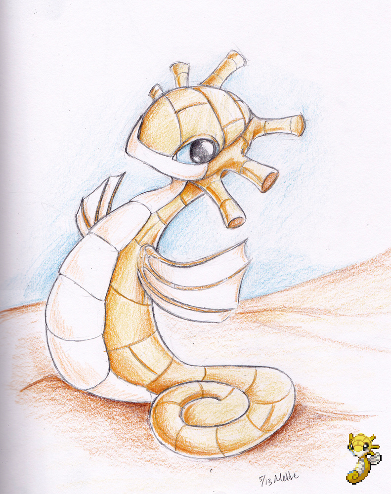 Very neat colored pencil technique! I like your shading, yes, very neat. Sandshrew and Horsea is a u