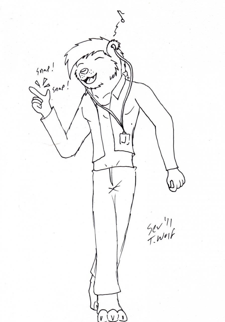 Bubba listening to an podcast on an IPOD