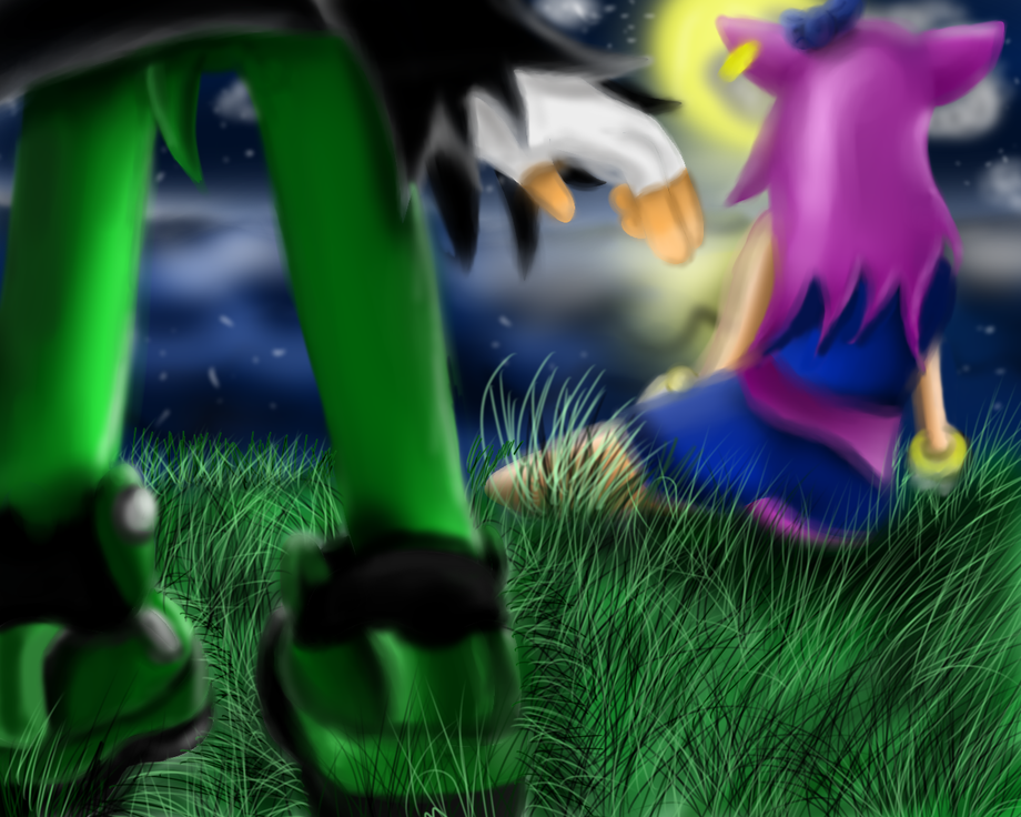 Nyx: Why didn't I just tell him. Damn it you are an idiot NYX! (looks at the lake) He's never gonna fully like you....... Damn I'm a hopeless Romantic. *closes her eyes* *Lays back on the ground to get ready to look at the stars. opens her eyes. and scourge is looming over her*