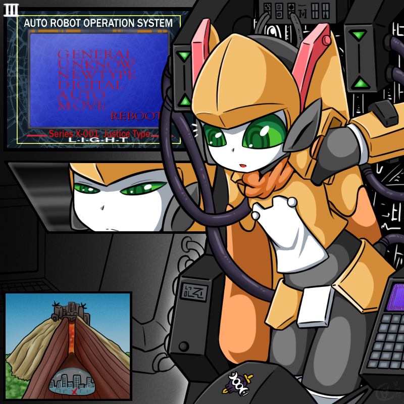 After a girl robot falls into the lava and unconscious. When she reboot the system up (wake up), she found that she was imprison by a strange machine with the logo of the evil scientist.