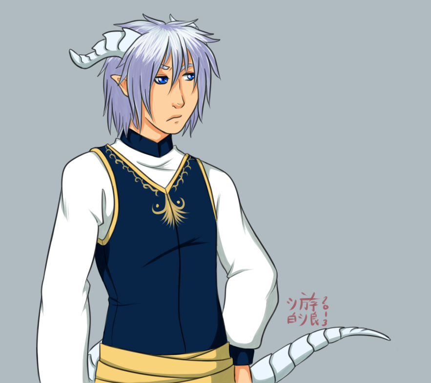 The human version of a frost dragon I have in mind. This isn't the best, but I will make some changes to him when I figure out his feral form. :) I'm also trying to figure out a style of shading and highlighting that works well and doesn't take forever, so I am sorry if things are not consistent for a while.