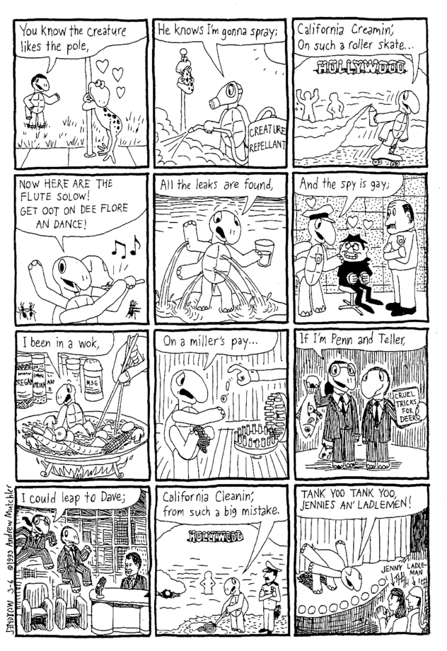 KT's wrong wrongity wrong rendition of "California Dreamin'" by the Mamas and the Papas. There's Boris Badenov AGAIN! Man, I sure liked putting him in my cartoons back then.