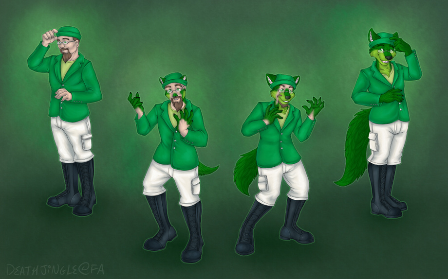 A commission for my friend and brother in green, divitus of a four sequence transformation from human Div to furry Div.