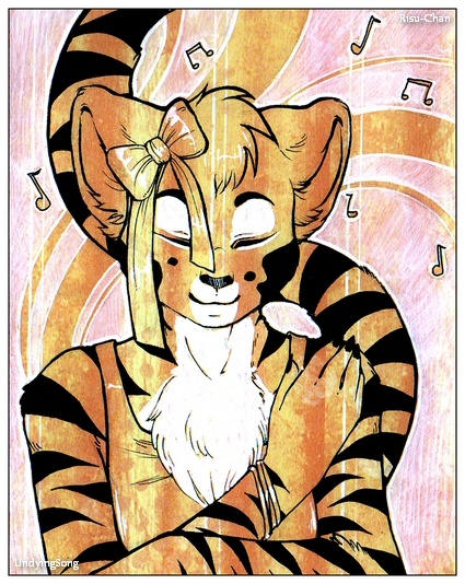 Yep, more art by the lovely duo that is Undying Song and Risu-Chan! They were open for more collaborative commissions, and I just couldn't help myself - I had to get another one! Song asked for some themes they could choose from, and I suggested something girly ('cause I'm getting in to that!) or something musical ('cause I'm in to that too). And they did a magnificent job of combining the two in this gorgeous picture! I really like the peaceful expression - I can think of so many songs that make me feel like that too. And I love the bow so much that I think it should be a regular feature! Really!