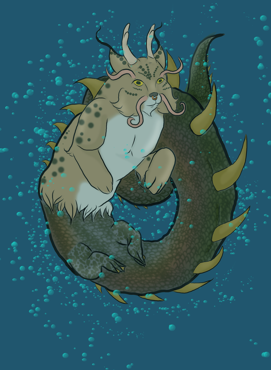 My interpretation of the mishipeshu, or water-lynx. i really suck at this drawing thing, goodness, I am unhappy with the finished picture