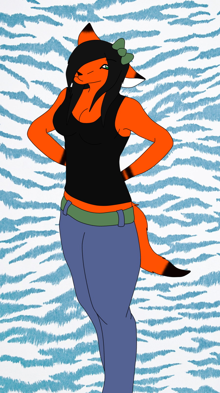 Drew this pic to go with the new orange and black fox set I am getting from KyoZaFox orange and black are my fave colors so is the wonderful moss green like my belt and bow <3 can't wait to get that set!